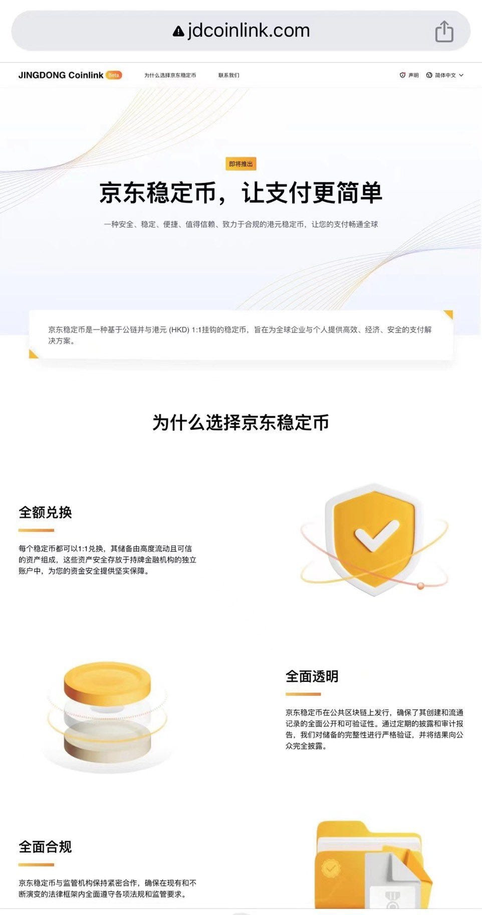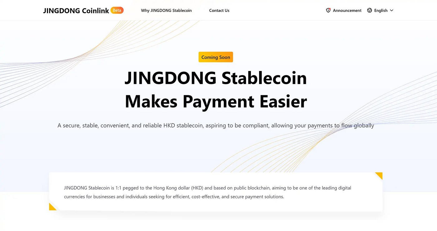京东子公司京东币链科技(香港)(JINGDONG Coinlink)将在香港发行基于公链并与港元 (HKD) 1:1 挂钩的稳定币。